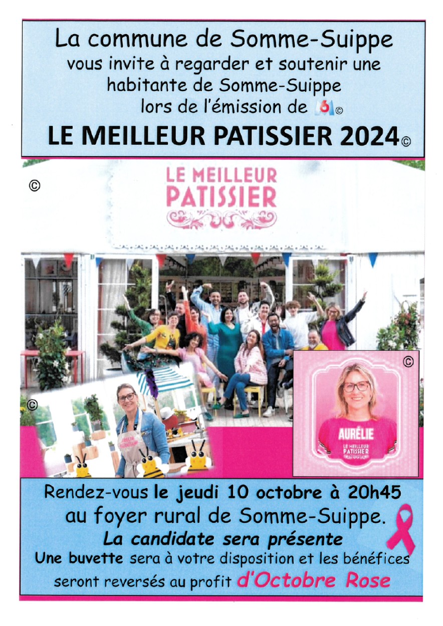 La commune de Somme-Suippe vous invite à regarder et soutenir une habitante de Somme-Suippe lors de l'émission de M6 : Le Meilleur Pâtissier !