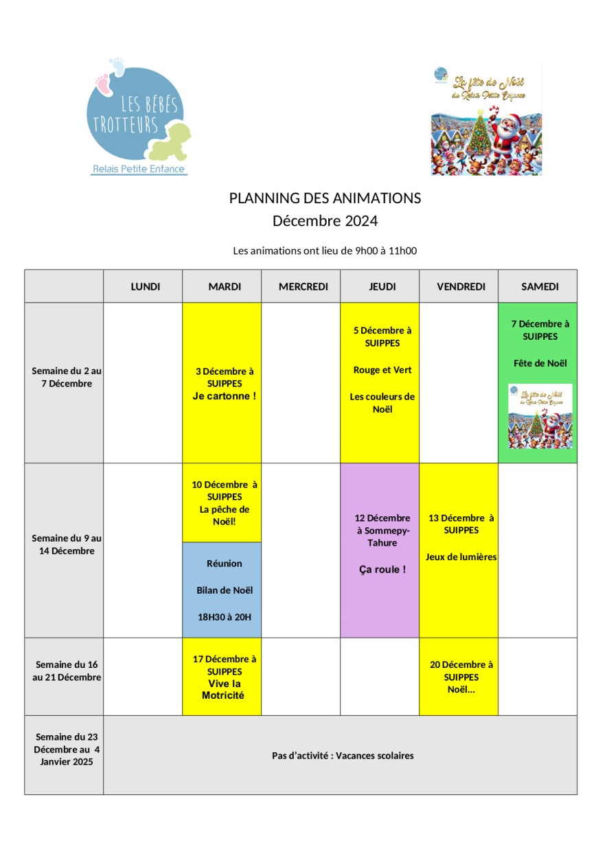 Animation RPEFamille et EnfanceJeudi 5 Décembre / 9h00 - 11h00![]() Pour vous inscrire, remplissez ce bulletin d'inscription et envoyez-le à