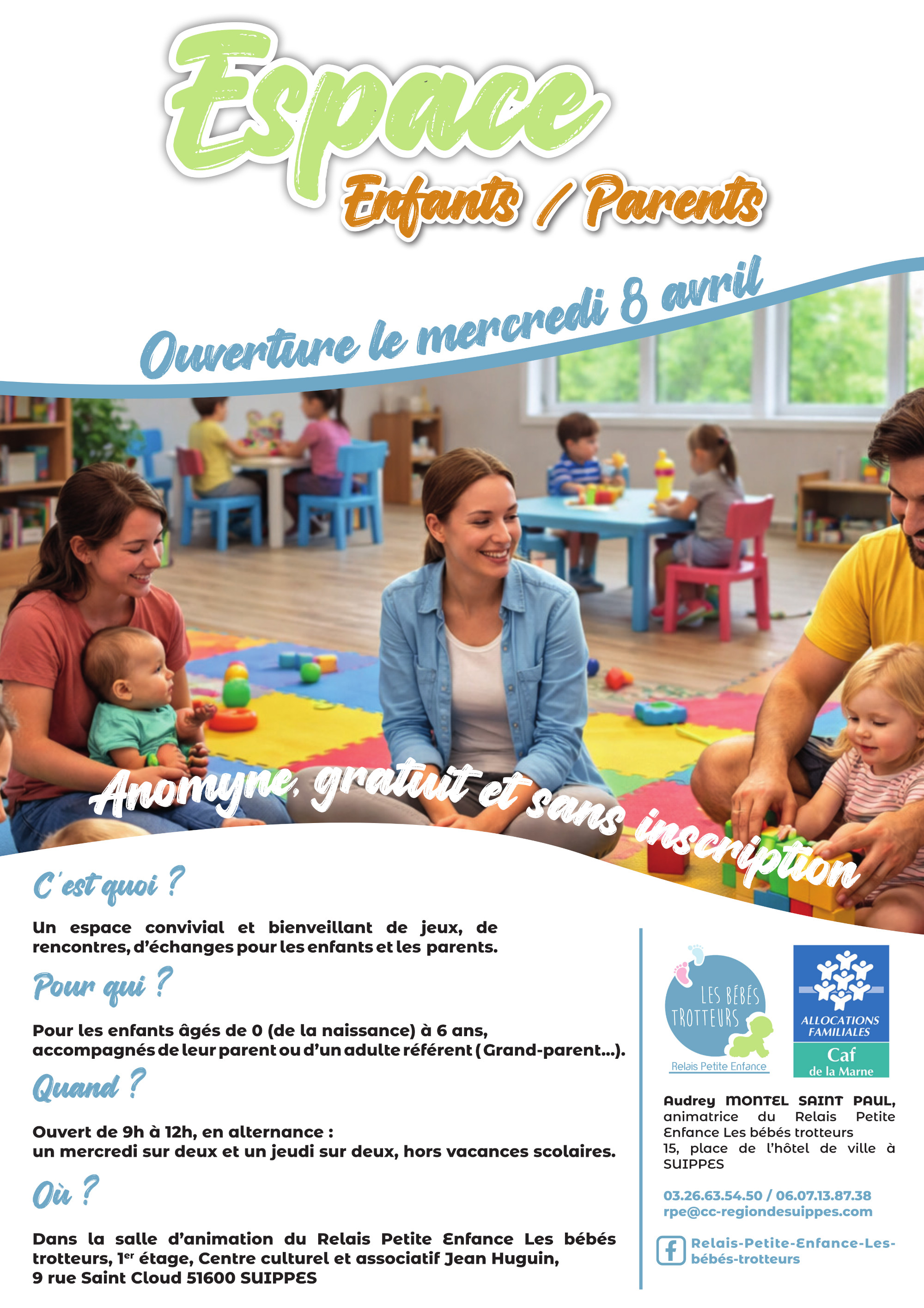 À partir du Mercredi 8 Avril 2026, la communauté de communes de la Région de Suippes propose aux familles un nouveau lieu d'accueil et de partage, un espace enfants / parents dédié aux tout-petits et à leurs parents ou adultes accompagnants.