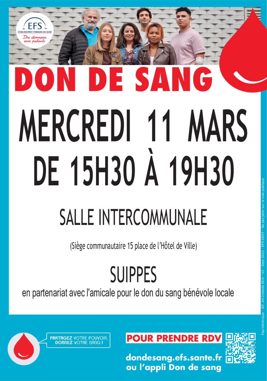 Don du sangVie Associative et CitoyenneMercredi 11 Mars / 15h30 - 19h30![]() JE DONNE MON SANG, JE SAUVE DES VIES. Pour prendre rendez-vous le mercredi 11 mars , cliquez sur ce lien.