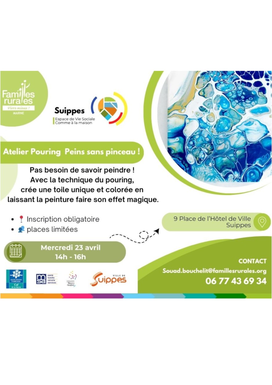 Atelier Pouring Peins sans pinceau ! 14:00 - 16:00 |